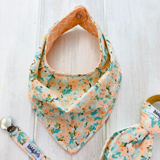 Our Baby Gift Sets are curated and handmade in beautiful coordinating fabrics. We are so excited to offer these truly one-of-a-kind gift sets. What better way to welcome a new baby into the family!