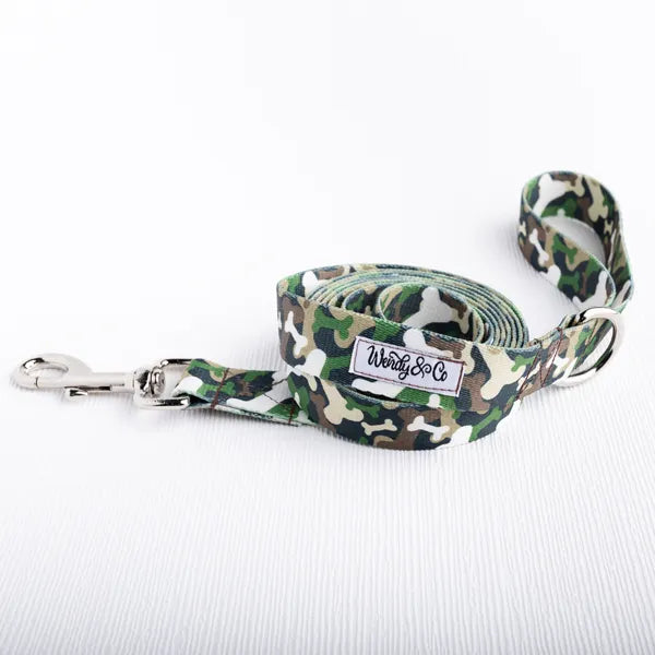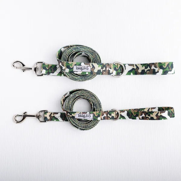 Dog dads love our Bone Hunter leash in true camo with brown, black and greens. Great for hunting, fishing or just hanging out looking tough.
