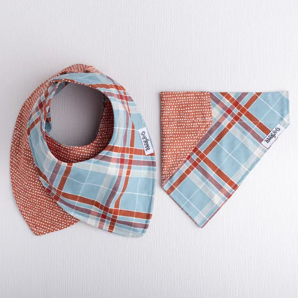 Lean into fall with our Slate Blue Plaid baby bib. An upgrade to any outfit!