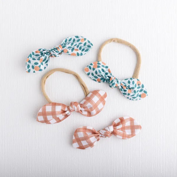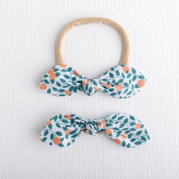 Top off any outfit with the Orchard Days baby bow. Handmade in a fruit orchard print, it’s the sweetest accessory for fall photos, gifts, and everyday wear. Matches the Orchard Days baby bib and blanket, and coordinates with dog accessories for family sets.