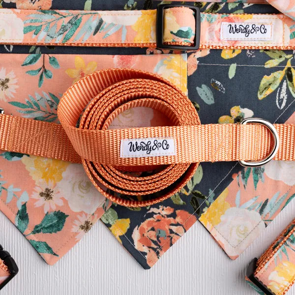 Wendy&Co's solid peach leash coordinates with so many of our collar and bandana designs! Our beautiful, sturdy leashes keep you pets safe. For evening strolls, daily exercise, hikes through the woods, strolling through craft events or simple bathroom breaks, our handmade leashes will keep your pet safe and stylish.