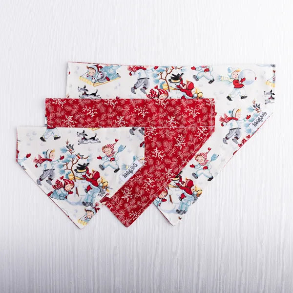 Our Tie On bandana is a triangle of fabrics to be tied around the neck. Also fully reversible with 2 coordinating fabrics.